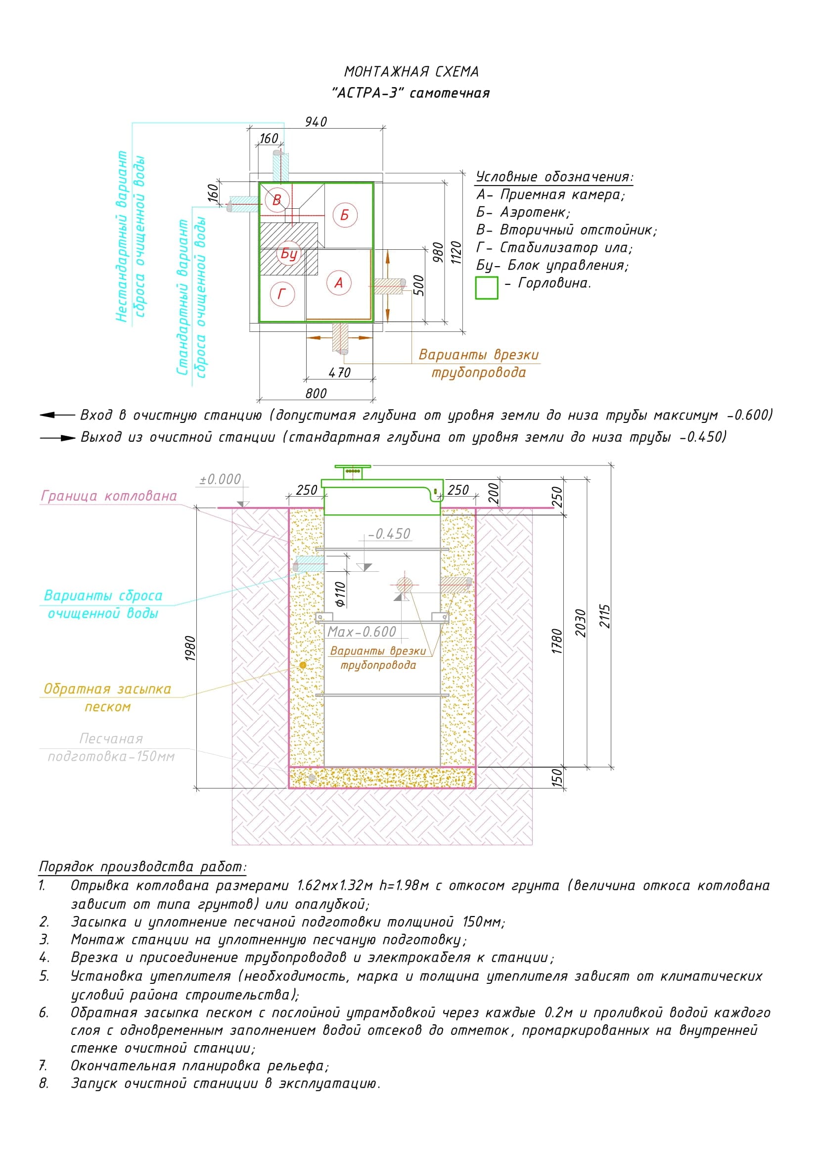 Канализации Юнилос Астра 3 отличаются по высоте и уровню врезки подводящей канализационной трубы в зависимости от глубины залегания выходящей трубы из дома и расстояния, на котором будет располагаться станция.